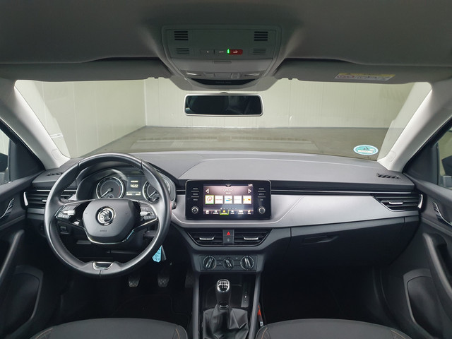 Deze ŠKODA Scala is voorzien van remote services. Via uw smartphone bedient u diverse functies ook op afstand en krijgt u informatie over de status van uw auto. Het audiosysteem met dab-radio biedt glasheldere geluidskwaliteit, u bedient dit veilig via het stuurwiel. U bedient de cruise control eenvoudig zonder uw handen van het stuur te halen. Het spreekt voor zich dat u in deze auto ook airconditioning aantreft. Ook lederen stuur, centrale deurvergrendeling met afstandsbediening en boordcomputer horen tot de voorzieningen op deze auto.