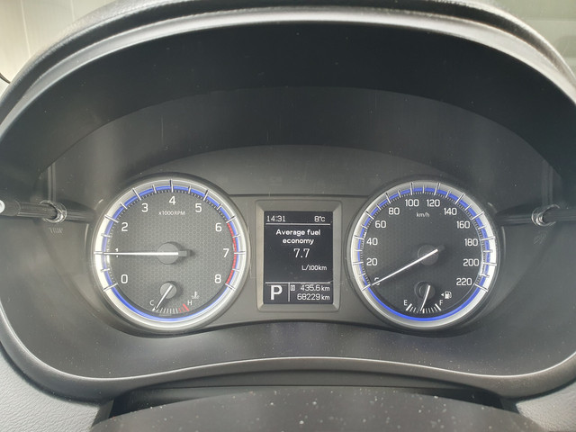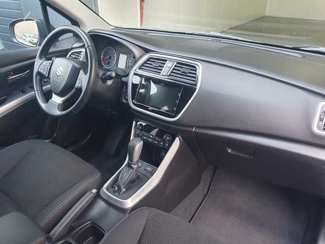 Afstand schatten bij het achteruitrijden? Niet nodig. U weet het precies, dankzij de achteruitrijcamera. Als u regelmatig met een aanhanger of een fietsendrager op pad bent, is de afneembare trekhaak een praktische extra. Met de knoppen op het stuur regelt u het audio-installatiesysteem, terwijl u uw blik op de weg gericht houdt. De auto is ook uitgevoerd met electronic climate control. Achter het stuur van deze Suzuki bent u niet alleen. De auto kijkt als het ware met u mee tijdens de rit. De regensensor schakelt de ruitenwissers in als het nodig is en de automatisch inschakelbare verlichting doet de lichten voor u aan. Natuurlijk behoren cruise control, automatisch dimmende binnenspiegel, lederen stuur, centrale deurvergrendeling met afstandsbediening en boordcomputer ook tot de uitrusting van deze complete auto.
